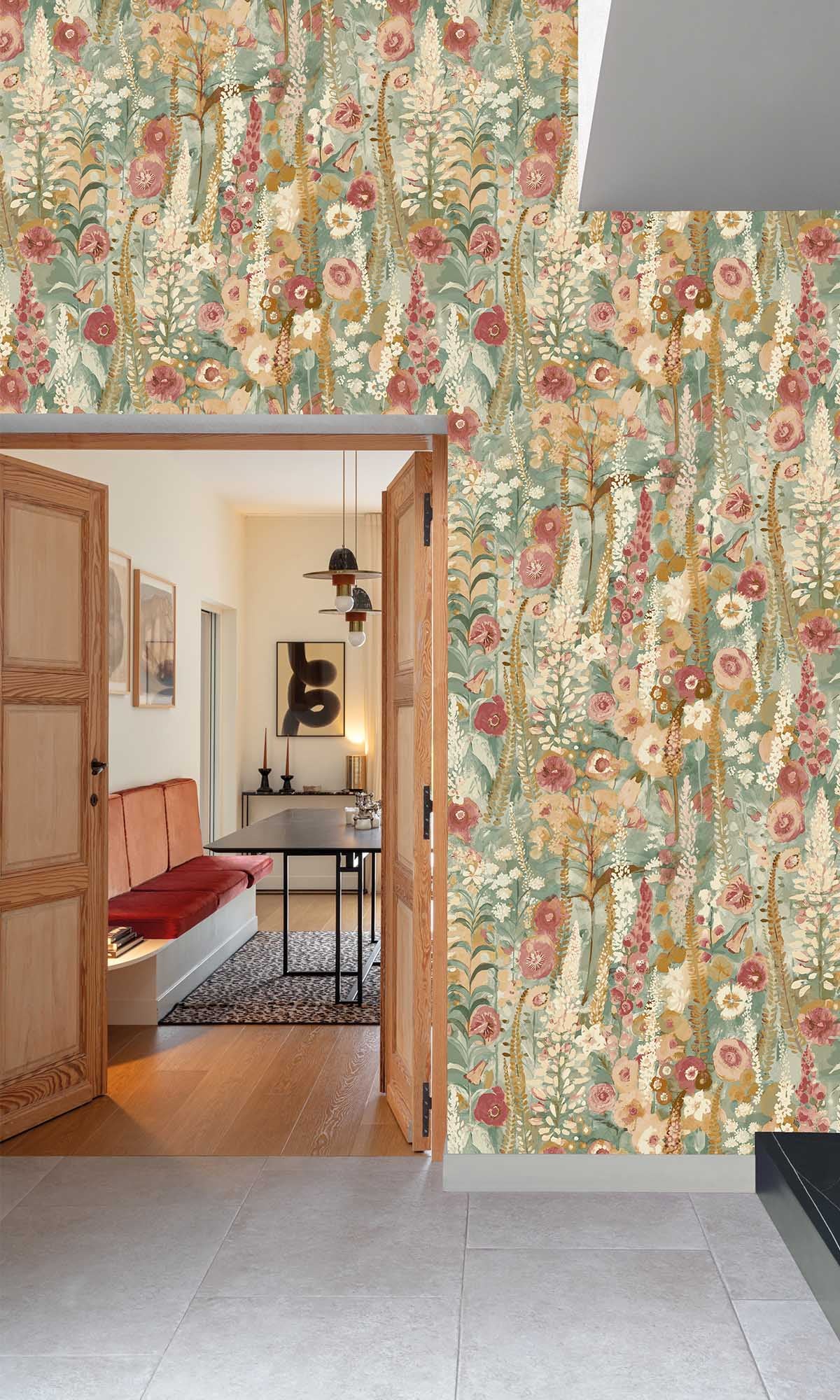Let a blooming garden spill into your home with our Watercolor Painted Floral Wallpaper. It’s not just a wall covering—it actually brings that gentle, painterly magic of nature inside. There’s a dreamy mix of poppies, foxglove, and ferns, all splashed in watercolor, so your space instantly feels like a calm, colorful escape.