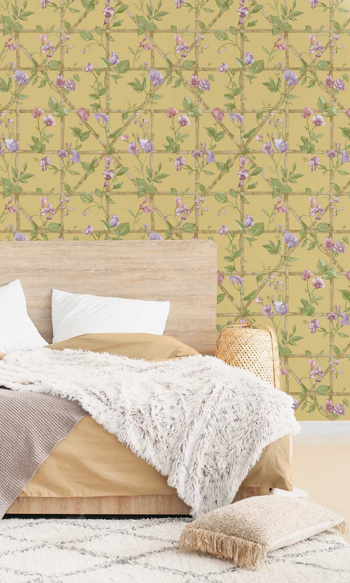 When your walls are screaming for a glow-up, and the Trailing Floral Vines Wallpaper? Absolute game-changer. It’s got this whole English garden vibe going on, but, like, without the mud or the bees. The design? Subtle trellis action with sweetpeas just doing their thing, climbing all over in the prettiest way. It’s not trying too hard—just those soft, flowy vines and some seriously detailed petals making everything feel fresh and kind of romantic. You walk in, and suddenly your living room’s breathing, if you know what I mean.
