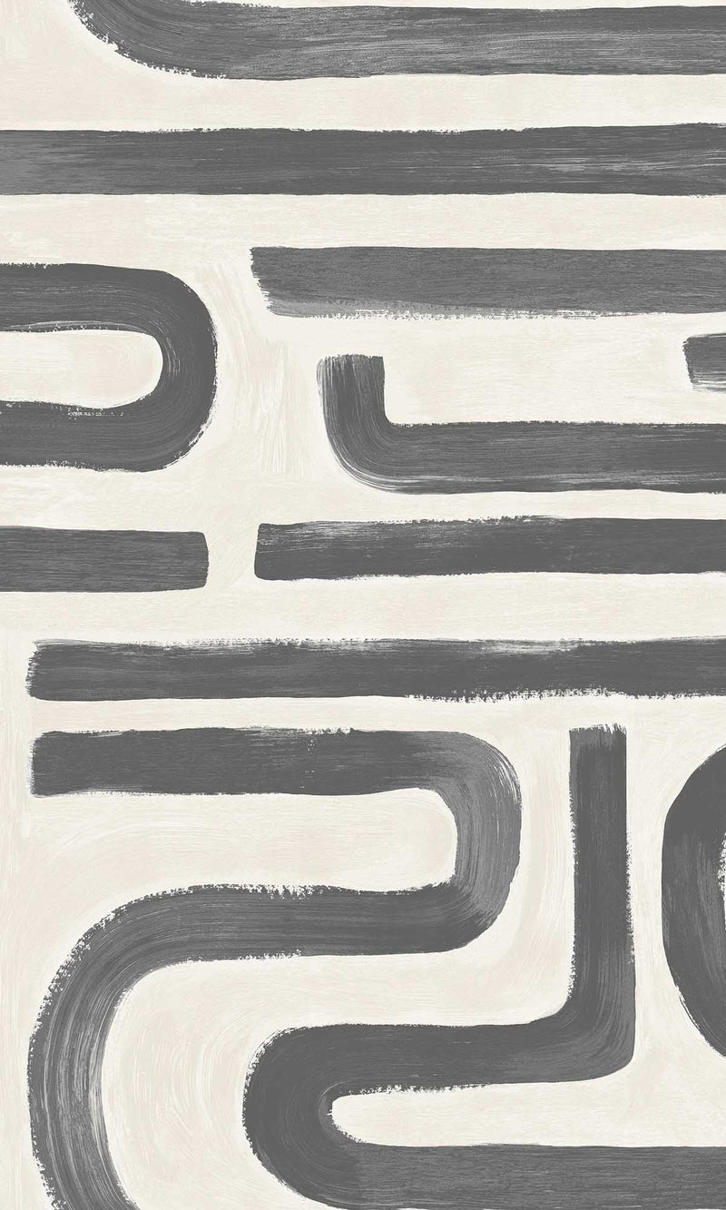 Charcoal Cream Painterly Geometric Maze Wallpaper R10085