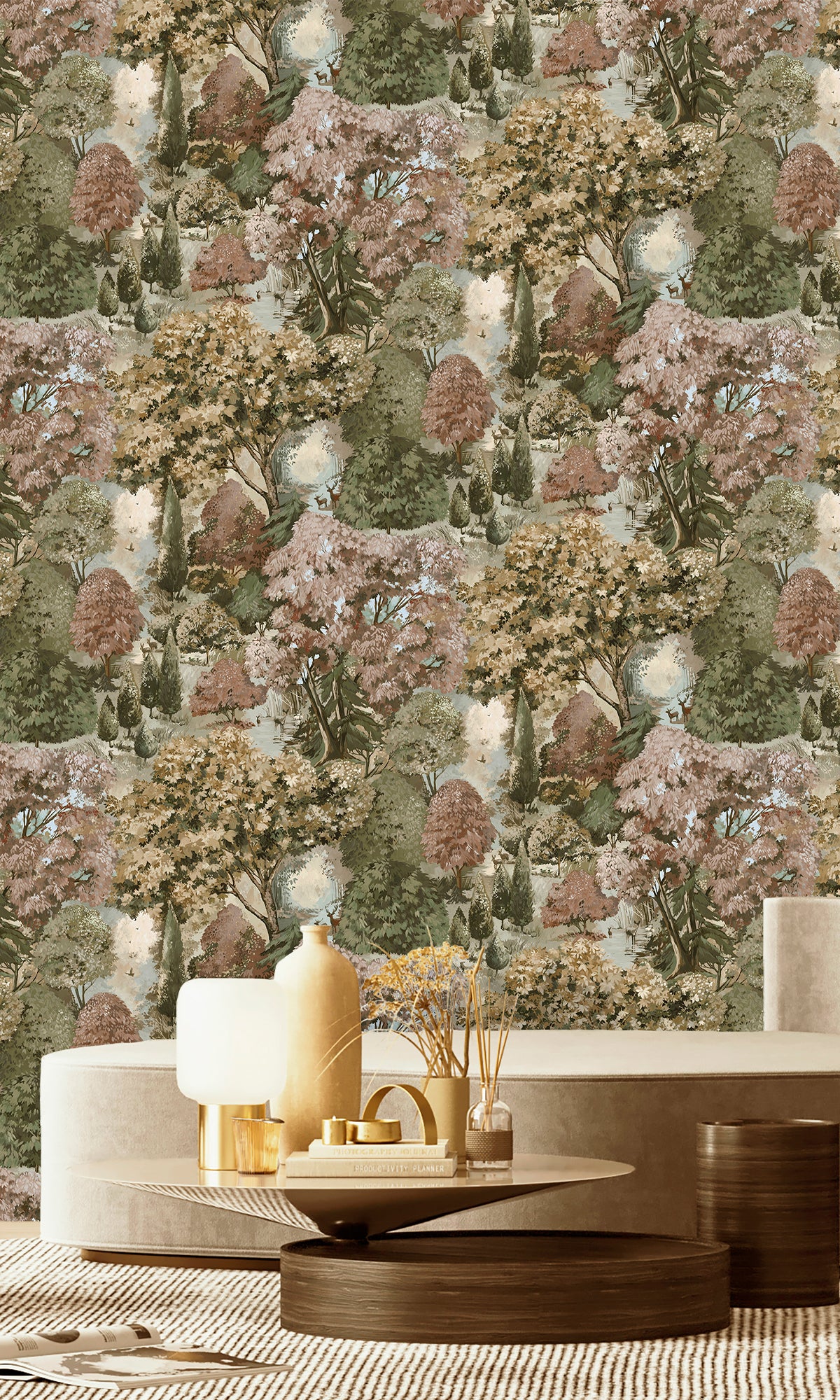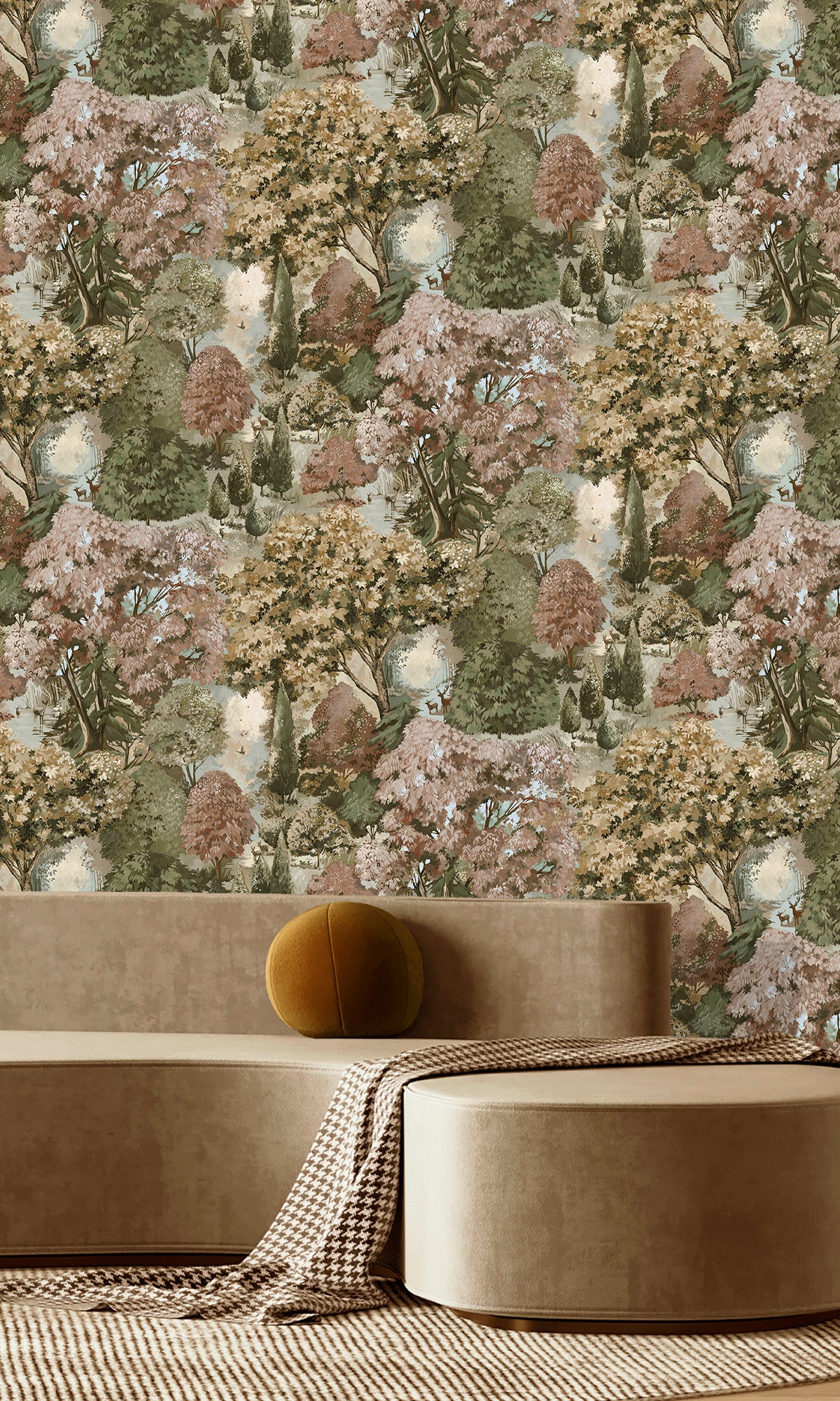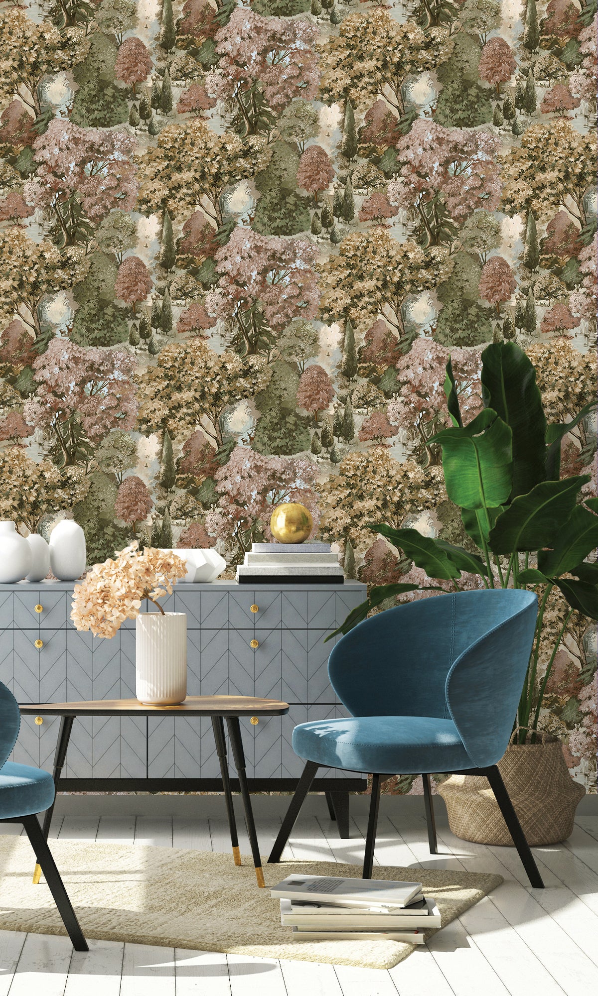 Set against a rich, scenic backdrop, this wallpaper captures nature’s tranquility, making it a perfect choice for creating a sophisticated yet serene atmosphere. Whether used as a feature wall or throughout a space, Pinecrest adds elegance and timeless charm to any interior.