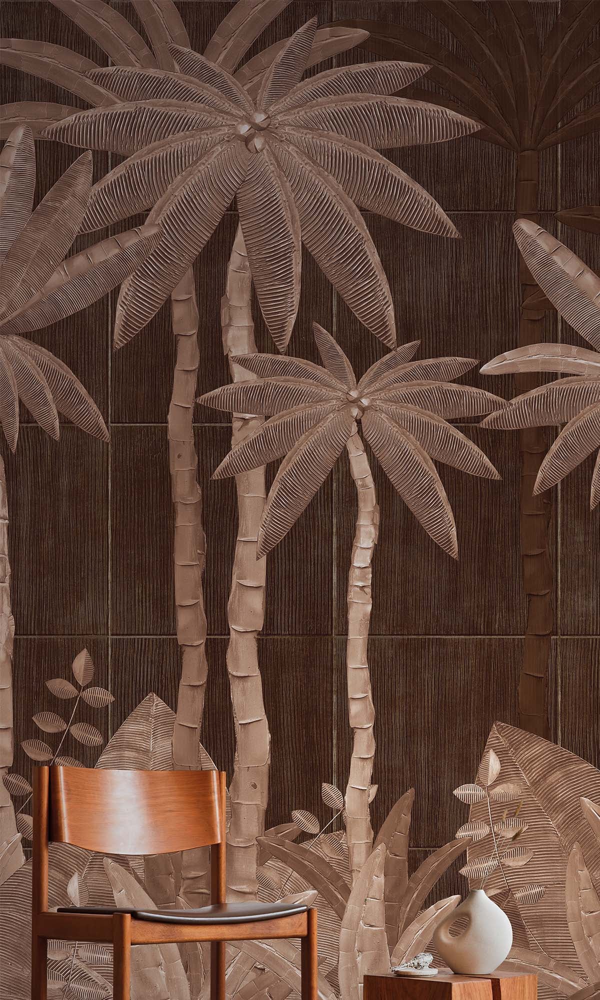 Scorched Terra Tropical Palm Leaf Residential Mural RM9126